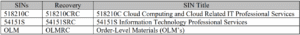The following table outlines the SINs and service categories awarded under this contract.